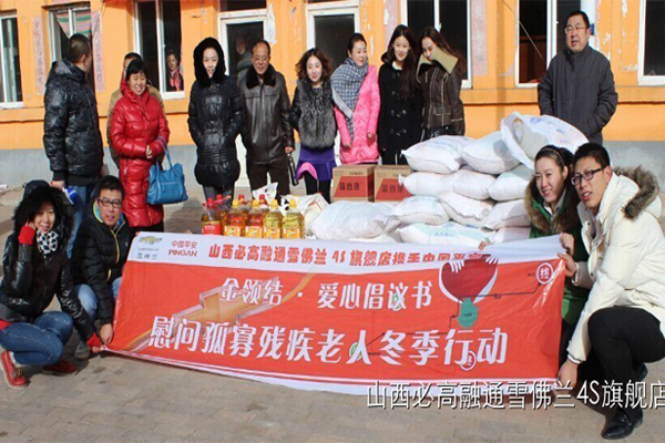 • 必高融通開啟“金領(lǐng)結(jié)”愛心倡議書暖冬活動(dòng)2014-12-02 冬季已至,天氣漸冷。山西必高融通汽車銷售服務(wù)有限公司攜手中國平安,聯(lián)合廣大愛心車主,在11月30日舉辦金領(lǐng)結(jié)愛心倡議書暖冬活動(dòng)。13臺(tái)雪佛蘭汽車,冒著嚴(yán)寒驅(qū)車前往大同縣周士莊鎮(zhèn)駕遇造村、孟家造村、遇駕山村,開展捐贈(zèng)活動(dòng)。本次活動(dòng)捐贈(zèng)對(duì)象:孤寡病殘老人,無子女,無經(jīng)濟(jì)來源的五保戶;他們沒有子女承歡膝下,贍養(yǎng)盡...