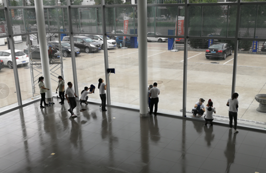 經(jīng)過(guò)長(zhǎng)達(dá)一個(gè)多月的時(shí)間,7月下旬展廳改造結(jié)束,在最后一項(xiàng)工程標(biāo)識(shí)安裝完工后,行政部組織全體人員開(kāi)始對(duì)展廳進(jìn)行衛(wèi)生大清理: